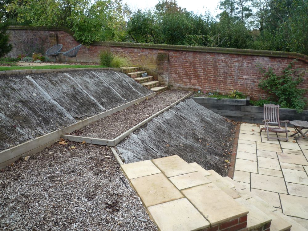 The newly created borders were all ready for planting when I first visited the garden and I relished creating a planting scheme for them. The garden featured some very steeply sloping beds which required stabilising and clothing in a suitable way.