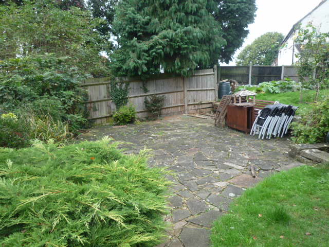 The raised beds near the house were pushed back to extend the patio directly outside the house and a space was created for a small child's play area plus bistro table and chairs.