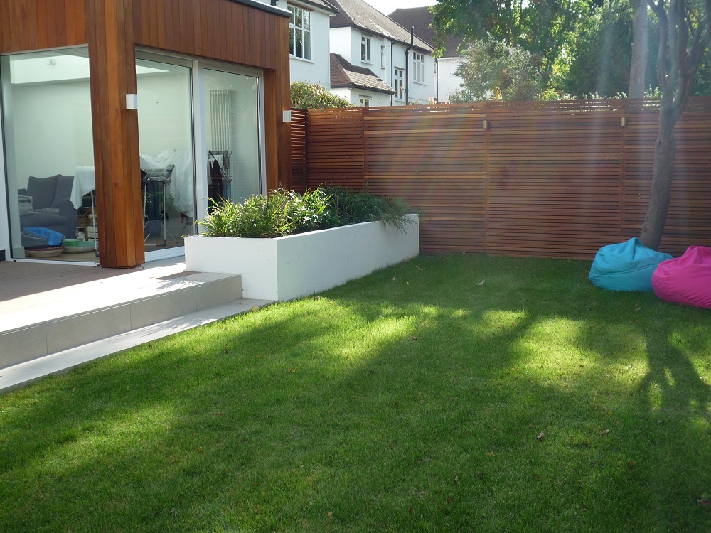 The old fences were removed and replaced with rendered walls and raised beds, topped with cedar baton fencing. Very little of the original garden remains, apart from a mature Laburnum with a architectural leaning trunk which was definitely worth saving.