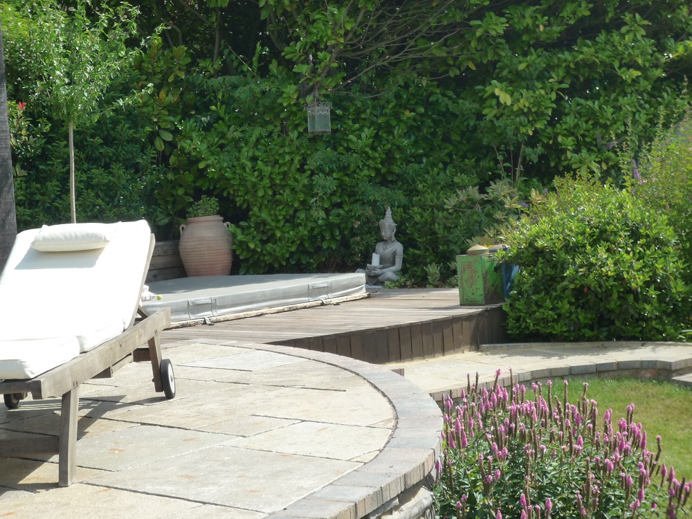 The gazebo has been beautifully dressed by my client, and is a gorgeous spot for relaxing, entertaining and enjoying the garden. Facing west, the views are amazing; perfect for a glass or two on a summer's evening, watching the sun go down over the rolling countryside.