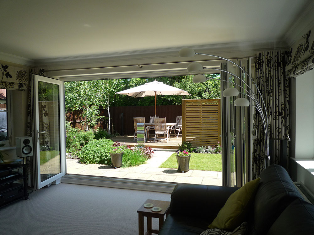The planting and landscaping transform this empty new build garden into a relaxing space which also looks good from the inside out...
