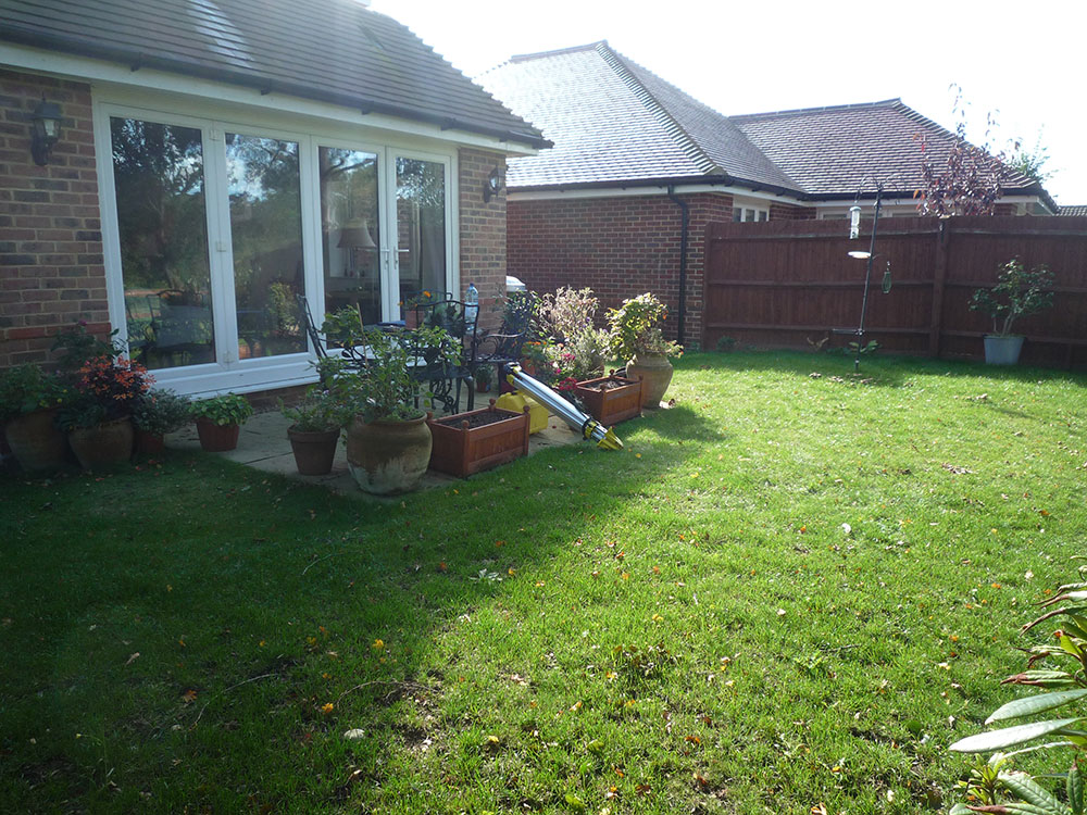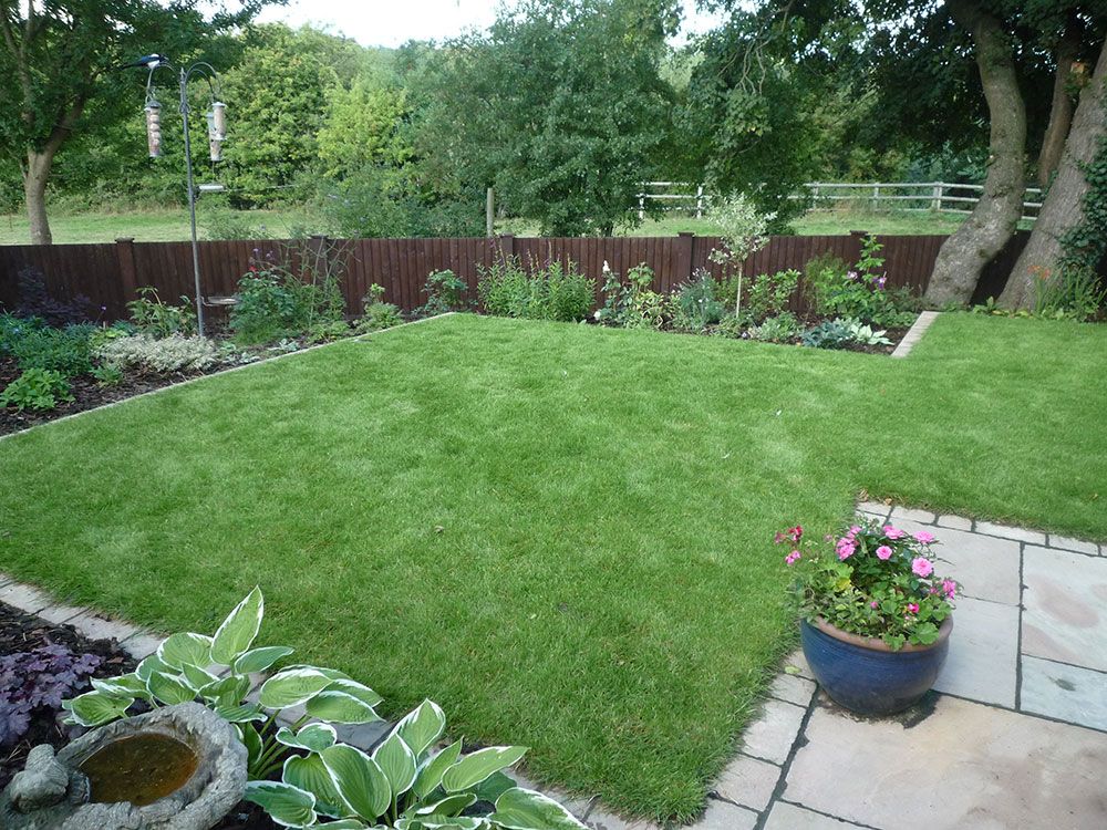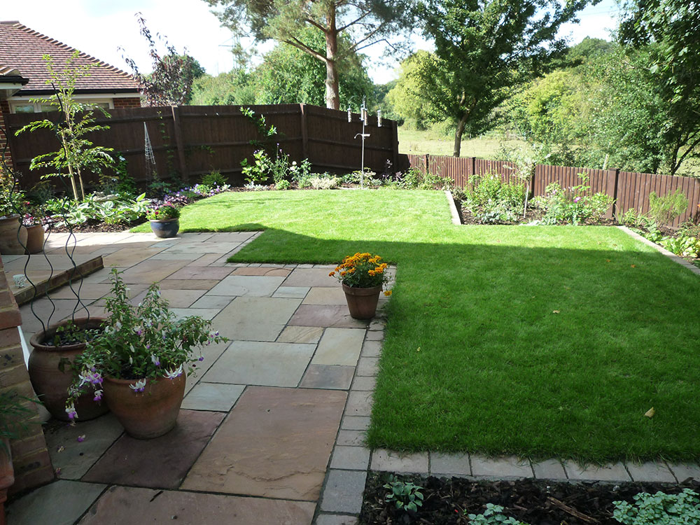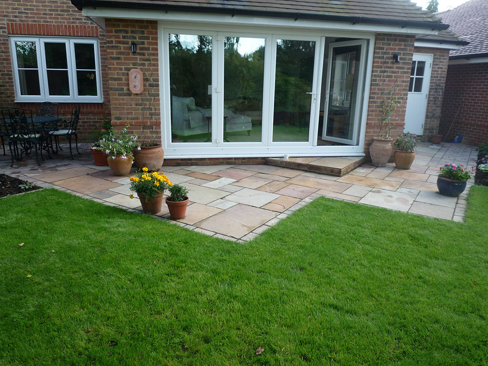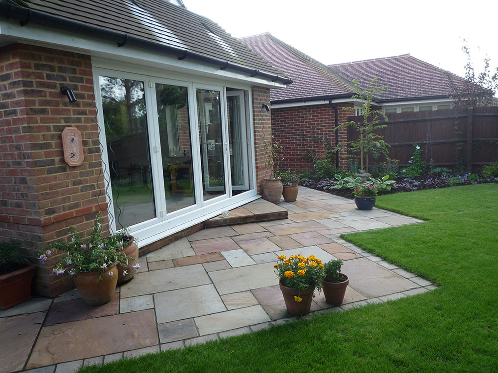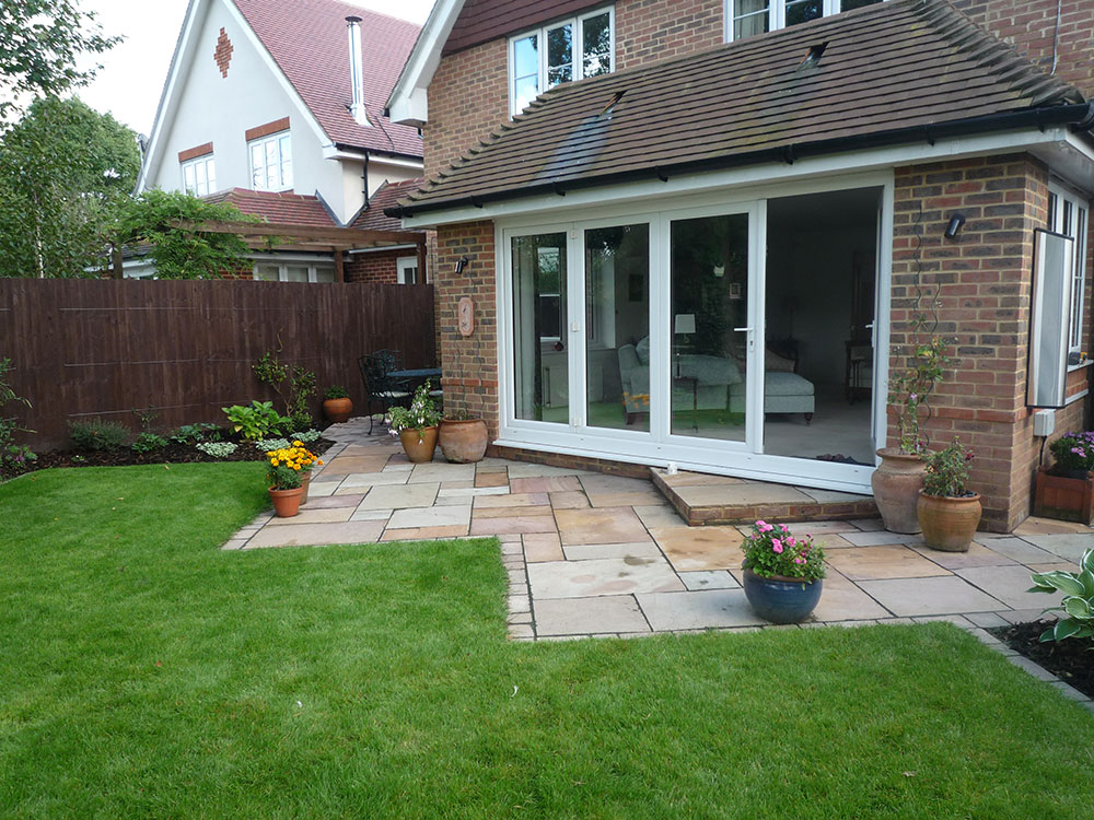 An Indian sandstone patio was laid, and a new step from the bi-fold doors makes entering the garden from the house much easier and safer.