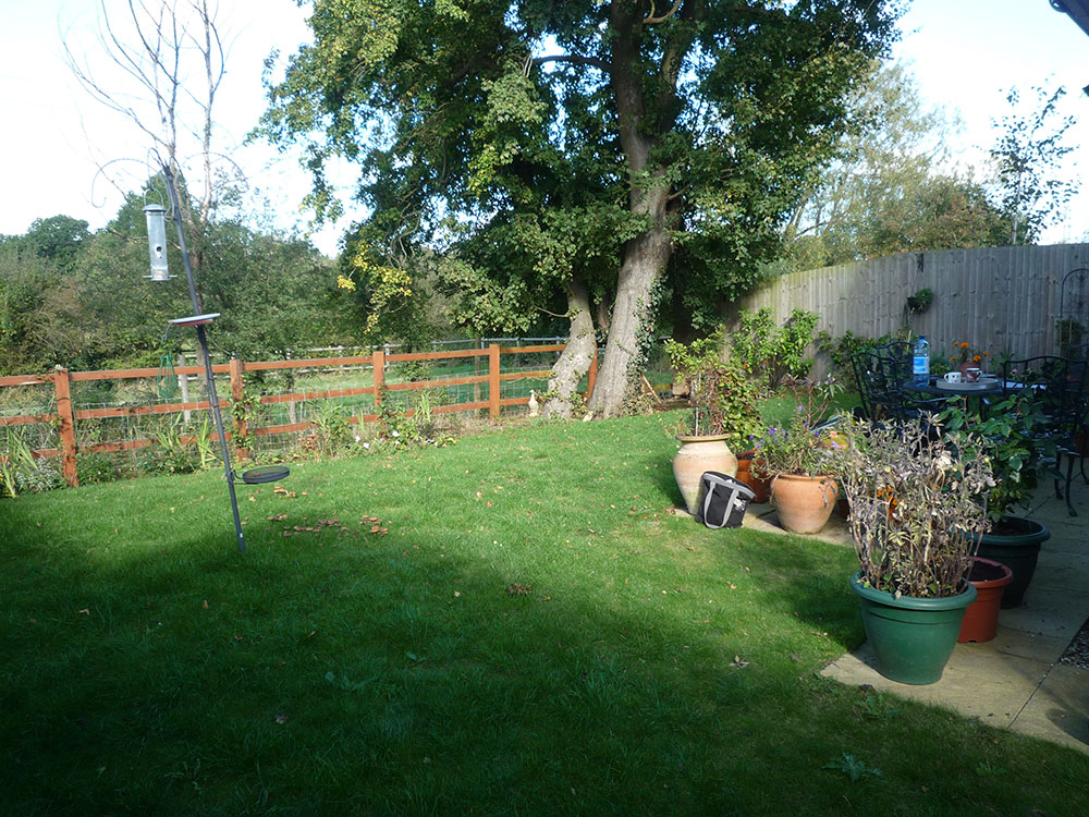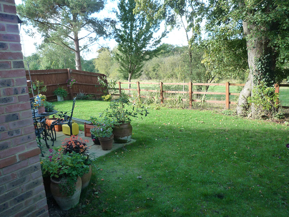 The all important view was kept with the low fence at the bottom of the garden and passing horses in the field beyond are a delight to see.