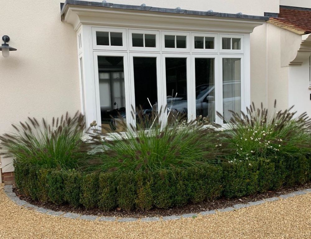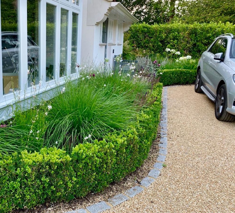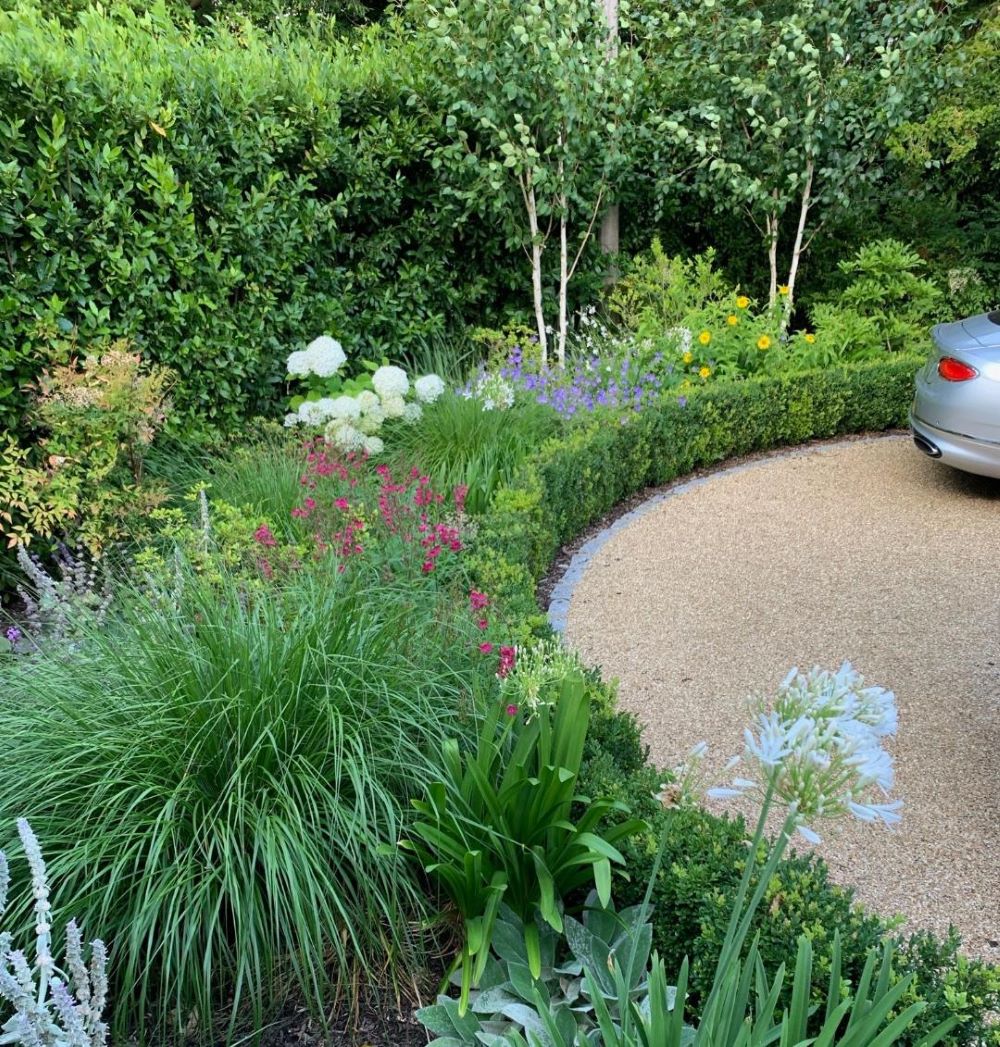This upmarket new build front garden and driveway had been planted by the developers but it needed a lighter touch where the planting was concerned and more colour and interest.