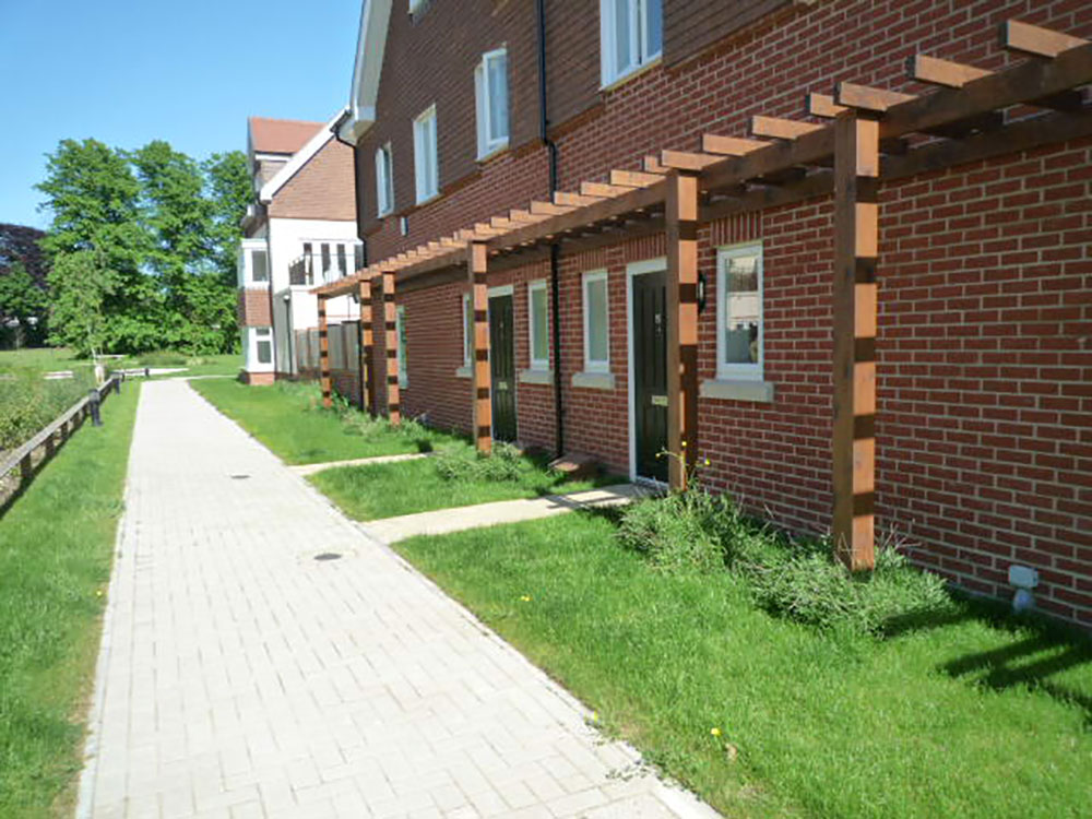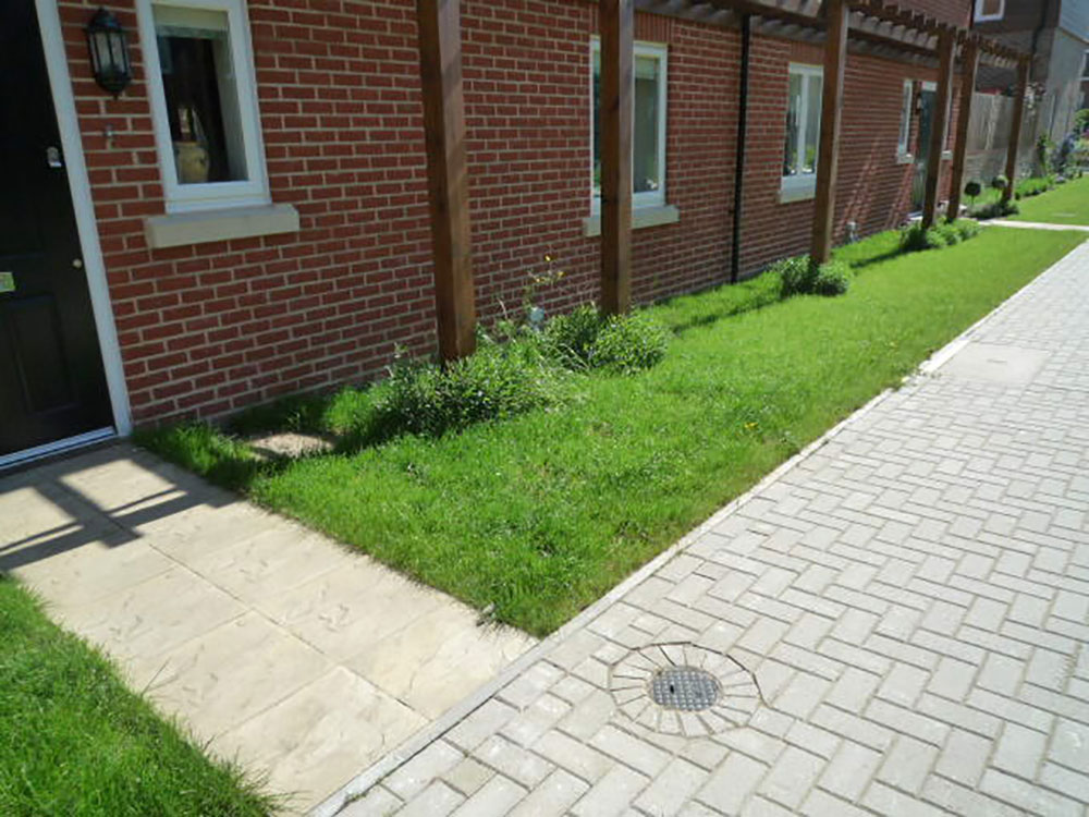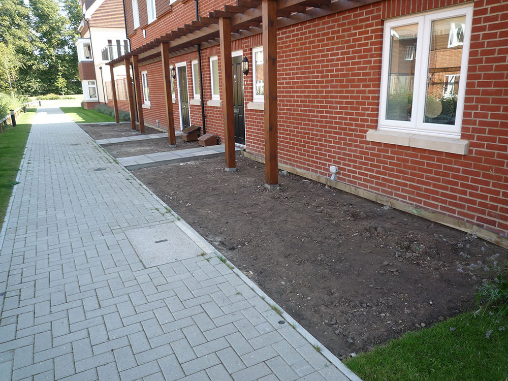 The owners of these 2 adjoining houses required something better looking and easier to maintain than the existing bumpy lawn and straggly lavender.