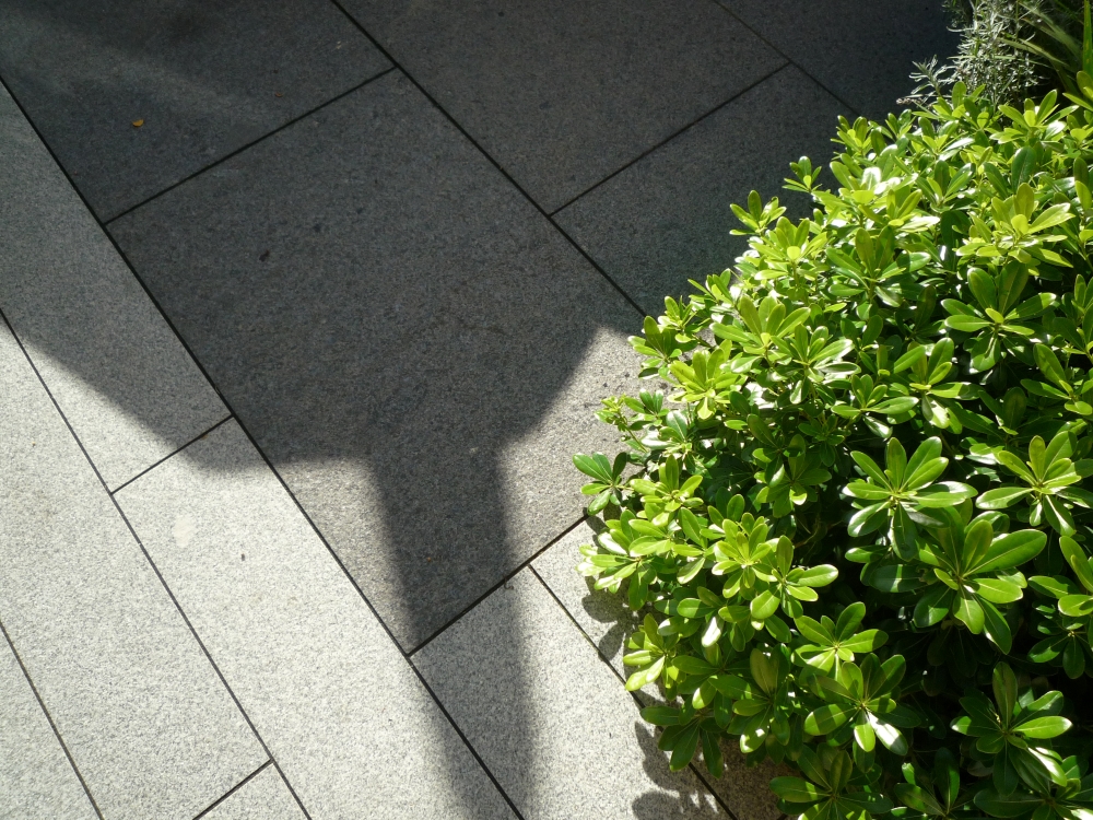 The Indian sandstone was replaced with two tone granite which is a much harder stone and won't attract the same amount of algae as sandstone.